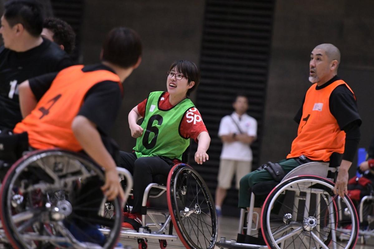 ▶ 障害のある選手だけでなく、性別や年齢に関係なく誰もが一緒にプレーできる車いすハンドボールは、世界的にも急速に注目度が高まり発展しています。
