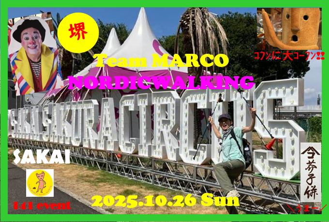 イベント内容 | 【イベント概要】 ●開催日:10月26日(日)9:40スタート ●集合場所:JR百舌鳥駅 改札付近 ●解散場所:南海線 堺駅付近 【参加費】 ・NW参加費:500円(保険料込み) ・レンタルポール:500円(先着5名) ・銀シャリen弁当:1,000円 ←希望者 ・さくらサーカス:1,000円 ←希望者 現在の情報・・・エビフライ・唐揚げ・ブリ照り焼き・シャケ・カレイが1000円 塩サバ、煮サバ、おでん、とんかつ900円などがあるようです。 ◎お弁当情報の詳細については、お申し込みの皆さまへ別途またご連絡いたします◎ イベント開催詳細は、ブログで必ずご確認ください https://marco-nw.com/goannai-20251026-marco-nw-sakai-kofun-sakuracircus-event/ |