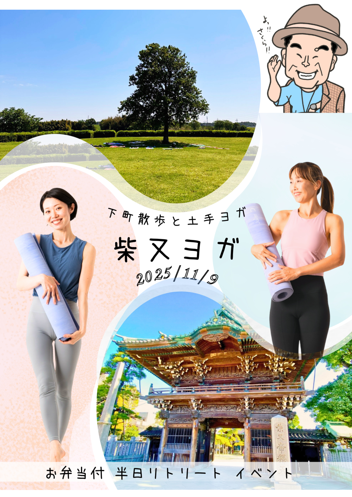 | イベント内容 | ●日時11月9日(日)9:00~13:00 ●タイムスケジュール 9:00柴又駅集合 時間厳守 →挨拶の後に土手へ移動します 参道をご案内 帝釈天前で写真を撮ります 10:15~11:30 ヨガ 11:30~11:40 撮影タイム 11:30~12:30 青空お弁当タイム ●参加費 大人¥4500(お弁当付き) 小人¥ 500 ◎クレジット決済のみ ※クレジットカード申し込みは大人のみの金額となります。 お子様の申し込みの際は、備考欄にてお知らせください 質問等はメールにてご連絡ください —————————— ◆こんな方にオススメ 身体を動かして汗をかきたい 陽の光を浴びながら大地と繋がりたい 木々のエネルギーを感じたい 心も身体も解放したい 1日を笑顔で過ごしたい —————————— 初心者の方も、安心してクラスにご参加ください 胸を開いて大きく呼吸し、太陽、緑、大地、風を存分に味わいましょう 参加者の皆様にとって、素敵なヨガタイムとなりますように ヨガ講師 坂田直美・マッキー @makki_yoga https://instagram.com/makki_yoga?igshid=NGVhN2U2NjQ0Yg== ◆坂田 直美 @naomi_yogini https://instagram.com/naomi_yogi__?igshid=MzRlODBiNWFlZA== |