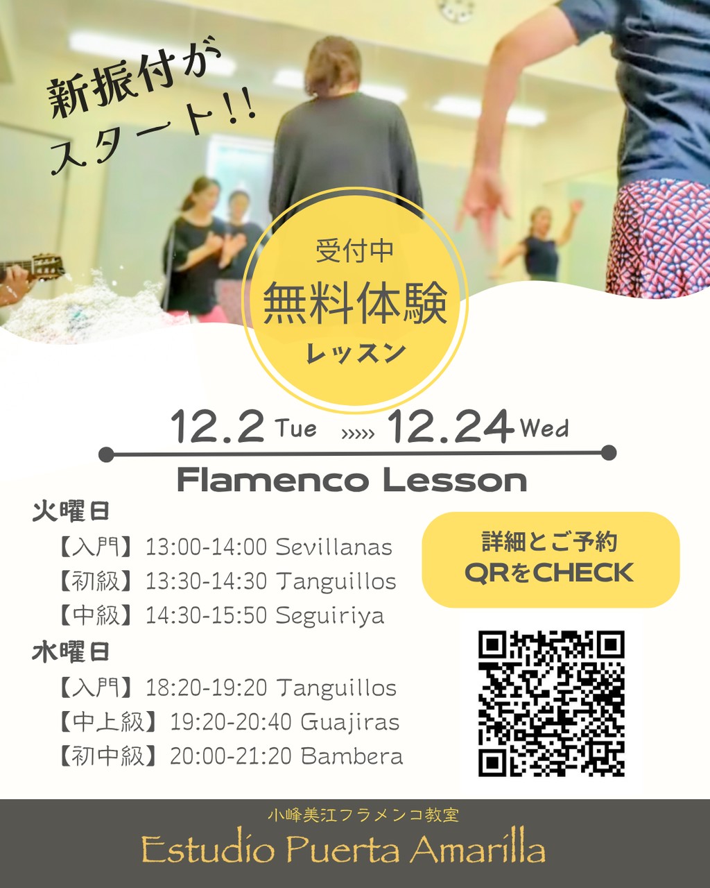 | 参加資格 | フラメンコが初めての方、または、少し習った事がありブランクがある方向け |