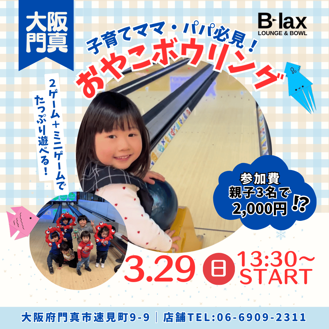 | イベント内容 | 【大阪|門真】B-lax3月イベント // 📣 おやこボウリング ✨ ∖\ ⭐️7本以上倒すとルーレット(スロット)が回転! 当たりが出たらお菓子プレゼント✨ ⭐️2ゲーム終了後はミニゲーム! 今回は「ビリヤード台の上のベルを鳴らそう!」 1人5回チャレンジ!1回でもベルが鳴れば景品がもらえる★ ミニゲームは過去にビンゴ大会、スーパーボールすくい、射的、宝探し等行いました☀️ 事前予約制で、とーーっても人気なイベントとなっておりますので、参加ご希望のお客様はお早めにご予約ください💠 ご予約は店舗電話、またはHPからお申込みくださいませ✨ 📍大阪府門真市速見町9-9 HPや料金の詳細はプロフィール【 @lounge_bowl_blax 】をチェック!たくさんのご予約お待ちしております❤ 🍊🍊🍊🍊🍊🍊🍊🍊🍊🍊🍊🍊🍊🍊 B-laxは19:00から1階のみ アミューズメントバーに大変身! 詳しくは【@blax_amusement_bar 】をチェック! 🍊🍊🍊🍊🍊🍊🍊🍊🍊🍊🍊🍊🍊🍊 #親子ボウリング #門真 #守口 #大阪お出かけ #家族イベント #スポッチャ #大阪子連れ #大阪万博 #大阪イベント #ららぽーと門真 すぐ #速見小学校 #古川橋 |