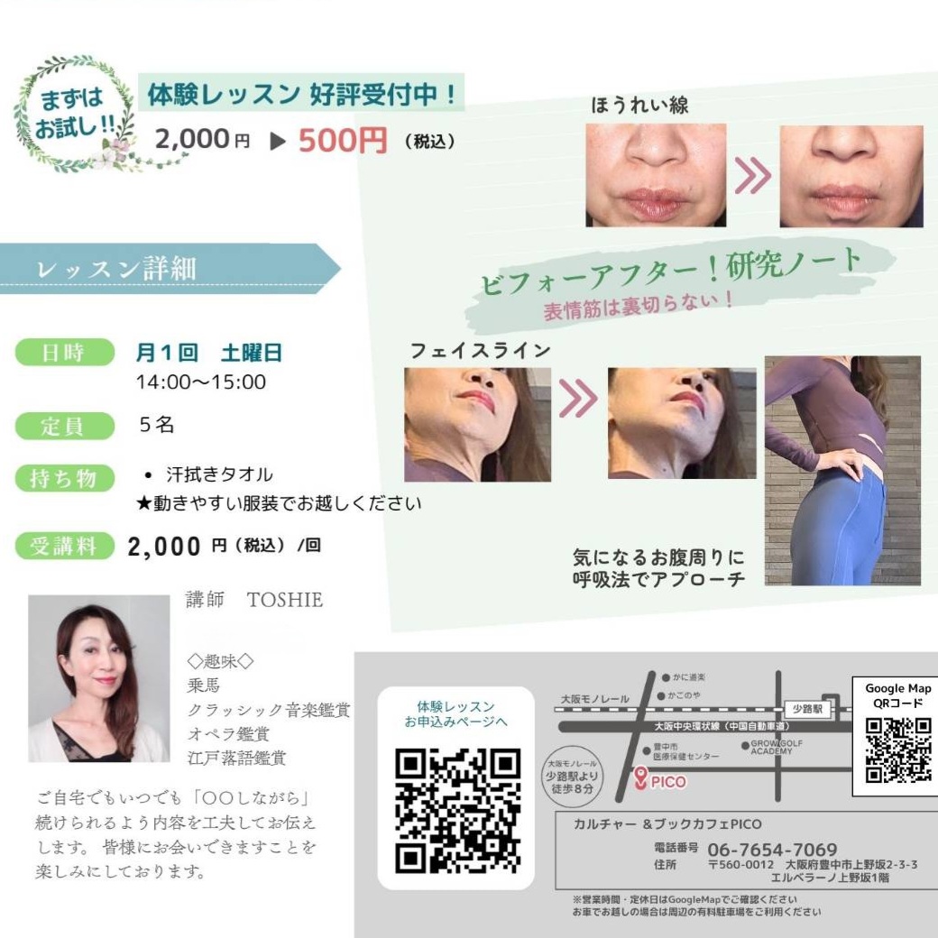 | 参加資格 | 初心者歓迎。顔の表情筋を動かし、全身運動を緩やかに行います。 |