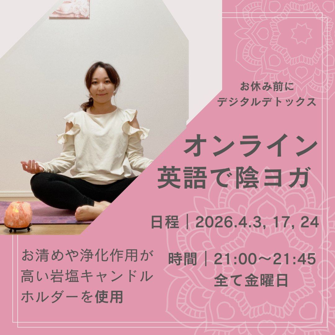 | イベント内容 | 開催時間: 21:00~21:45 ●このクラスで大切にしていること● 画面から一歩離れて、呼吸と自分自身に戻ること 比較や評価から離れ、心を“オフライン”に切り替えること 英語のやさしいキューイングで、心地よく脳のスイッチを切り替えること 岩塩キャンドルホルダーのやわらかな灯りとともに、 忙しい一週間の終わりに「おやすみ前の儀式」をつくっていきます。 ●こんな方におすすめ● SNSを見すぎて、気づくと自己嫌悪やモヤモヤがたまっている方 パソコン作業・デスクワークで首・肩・腰がガチガチになっている方 眠る前に、頭の中のざわざわを静めたい方 英語が好き・久しぶりに触れたいけれど、勉強モードではなくリラックスしたい方 忙しい平日の夜でも、45分でさっとセルフケアしたい方 ※インストラクションは 簡単な英語+必要に応じて日本語フォローでご案内します。 ●講師:Miho ・RYT200 ・バイリンガルヨガ習得 ・陰陽ヨガ指導者養成 習得 学生の頃からヨーロッパを中心に一人旅をしていました。 旅先で現地の方々に親切にしていただいた思い出から、今度は訪日外国人へ日本で良い思い出とリフレッシュした空間を提供したいと思い、バイリンガルヨガインストラクターとして活動。 日本人の方にも英語ヨガを身近に感じていただける方を増やしたいと思い、活動中。 |