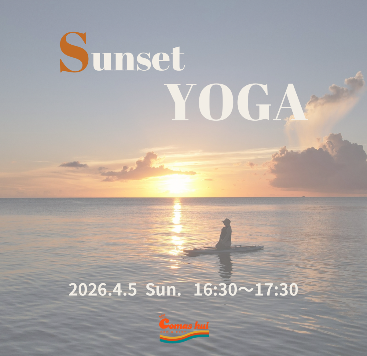 | イベント内容 | 《Sunset YOGA詳細》 日時:4/5 日曜日 16:30〜17:30 (16:15〜 受付開始) 場所:Comas_hui (愛知県南知多町) ※駐車場あり・別途料金 参加費:3000円 (当日現金払いのみ) 持ち物:飲み物・タオル・ヨガマット 汚れ等気になる方は、ビニールシートをご持参ください。 ご質問等ございましたら、Instagram DMにて お気軽にお問い合わせください。 ●講師:Kumi 笑うこと、楽しいことが大好き! 直感を信じて進む、 自由で愛にあふれた ポジティブチャレンジャー! “ひとりじゃない” 最大の味方は、いつもわたし自身。 夕陽 とともにこれまでの道のりと、 これからの一歩へ。 心と身体へ、そっと感謝を向ける。 空や海のように心も身体も、 ぐ〜んと自由に広がっていく。 『I like Me.』(私は、わたしが好き)をモットーに、 ありのままの自分とつながる時間を 愛知県を中心に、好きな場所にてお届けしています。 Instagram:@kumistyle_321 全米ヨガアライアンスRYT200 取得 IGNITE YOGA 認定講師 Japan Journaling Association® JJA認定ジャーナリング講師 取得 |