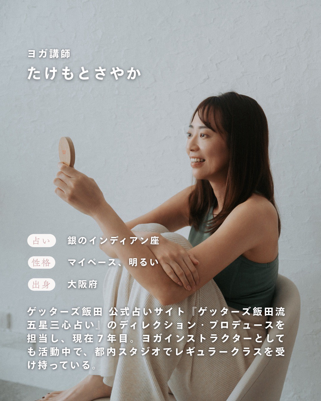 | イベント内容 | ●開催日時:2026年4月5日(日)16:45~18:15(約90分) ※受付開始は16:30~ こんな人にオススメ ┈┈┈┈┈┈┈┈┈┈┈ ◆金のインディアン座・銀のインディアン座の方 ◆新しいことに挑戦してみたい方 ◆ヨガで心と体を整えたい方 ◆頭の中をスッキリさせたい方 ◆同じタイプの人と話してみたい方 参加費 :4,900円 ●講師:たけもとさやか 都内スタジオを中心に、リラックス系のヨガクラスを担当。ヨガを通して心が整う感覚に魅力を感じ、全米ヨガアライアンスRYT200を取得。日常に寄り添うヨガを伝えている。 また、ゲッターズ飯田の占いコンテンツのディレクションにも携わり、その経験を活かして「五星三心占い × ヨガ」をテーマにしたクラスを開催。 クラスではポーズの完成度よりも「気持ちが少し明るくなること」「心がふっとほぐれること」を大切にし、ヨガ初心者でも安心して参加できるやさしいクラスづくりを心がけている。 |