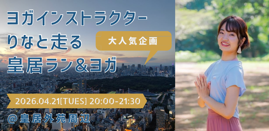 | イベント内容 | 【こんな方にオススメ!】 ・運動不足を解消したい ・リラックスしたい ・肩こりやむくみを解消したい ・美容や健康が好き ・友達をつくりたい ・趣味を増やしたい ・朝活したい 【日時】 4月21日(火)20:00〜21:30 20:00〜 自己紹介タイム、ヨガストレッチ 20:30〜 ランニング&ヨガストレッチ 21:30 終了 【集合場所】 桜田門公衆トイレ前 https://maps.app.goo.gl/c3UuVwFrRpawFhXaA?g_st=ic ヨガストレッチから参加の方は20:00、ランニングから参加の方は20:30にお越しください。 ※桜田門公衆トイレは夜間は閉鎖しています。駅のロッカーまたは近くのランステに荷物を預けて、着替えた状態でお越しください。 【参加費】 2200円(ヨガストレッチ付き) ※当日現金またはPayPayでお支払いください。 ※他のサイトでも掲載しているため、受付期間中でも締め切らせていただく場合がございます。予めご了承ください。 ※参加費に施設利用料およびブランチ会の飲食代は含みません。 ※雨天時は皇居ランを中止し、11:00〜のブランチ会のみ開催します。その場合、ラン&ヨガの参加費は頂きません。ブランチ会の飲食代のみご負担ください。 【定員】 20名程度 ※先着順、定員に達し次第締め切りとなります。 【講師】RINA 幼少期からクラシックバレエを10年間経験し、動物看護師を経て、ヨガの道へ。都内や横浜を拠点に、月20回ほどスタジオや公園などでヨガレッスンを行う。皇居ランやウォーキングイベントなど、屋外での活動も行っている。 Instagram: https://instagram.com/rinachi0413?igshid=YmMyMTA2M2Y= 【持ち物】 動きやすい服装 飲み物 ※立ちポーズのみのヨガなので、ヨガマットは不要です。 ※本企画に関するお問い合わせは、「主催者に連絡」からメッセージをお送りください。 |