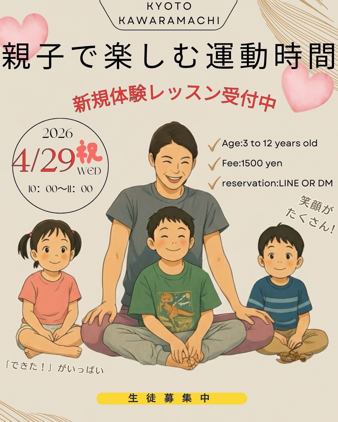 〜はじまりの季節、ここで一旦心と体を休憩させよう〜 新しい生活にもやっと慣れてきて落ち着いてきたころ。ここで少し親子で向き合って 心のリズムと体のリズムの波長を合わせよう。