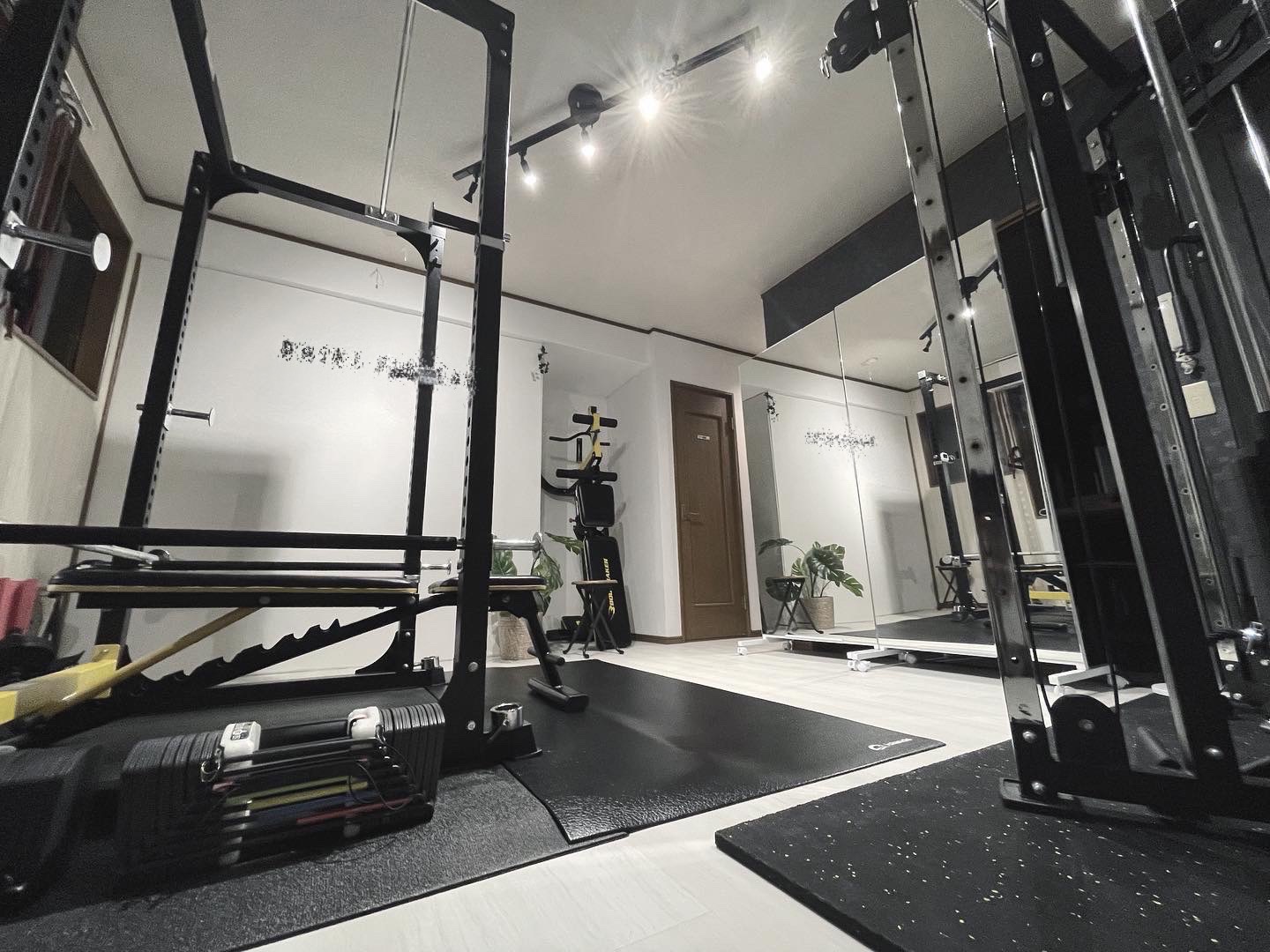 パワーラック, オリンピックバー, インクラインベンチ, ケーブルマシン, 可変式ダンベル, ダンベル1~5kg, ヨガマット, ストレッチポール, バランスボール, チューブ類, セラバンド, 電動フォームローラー×2、アブローラー、マググリップ×1、ナローグリップ、マルチベンチ、など