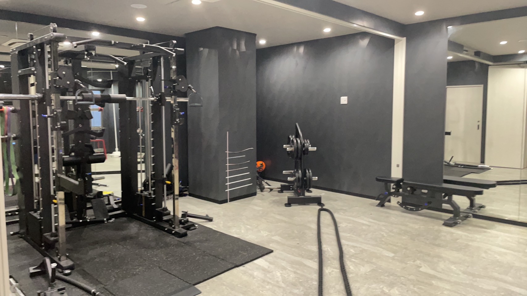 パワーラック, スミスマシン, オリンピックバー, インクラインベンチ, ケーブルマシン, 可変式ダンベル, ヨガマット, ストレッチポール, バランスボール, マッサージベッド 更衣室, シャワー, 水, ゴミ箱, 室内シューズ, エアコン, タオルのみ有料予定