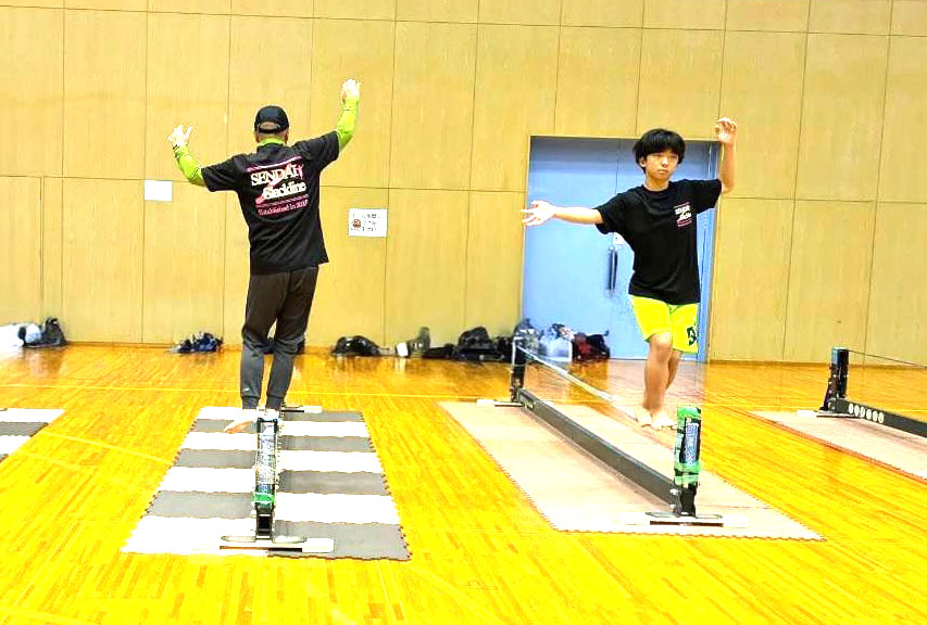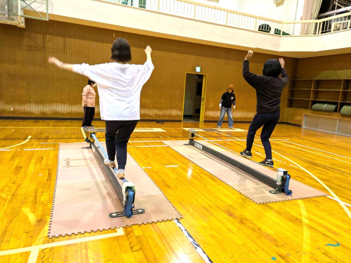 スラックラインはいわゆるベルト状のラインを歩く綱渡りのようなスポーツで、体幹やバランス、集中力を楽しく鍛えることができます。