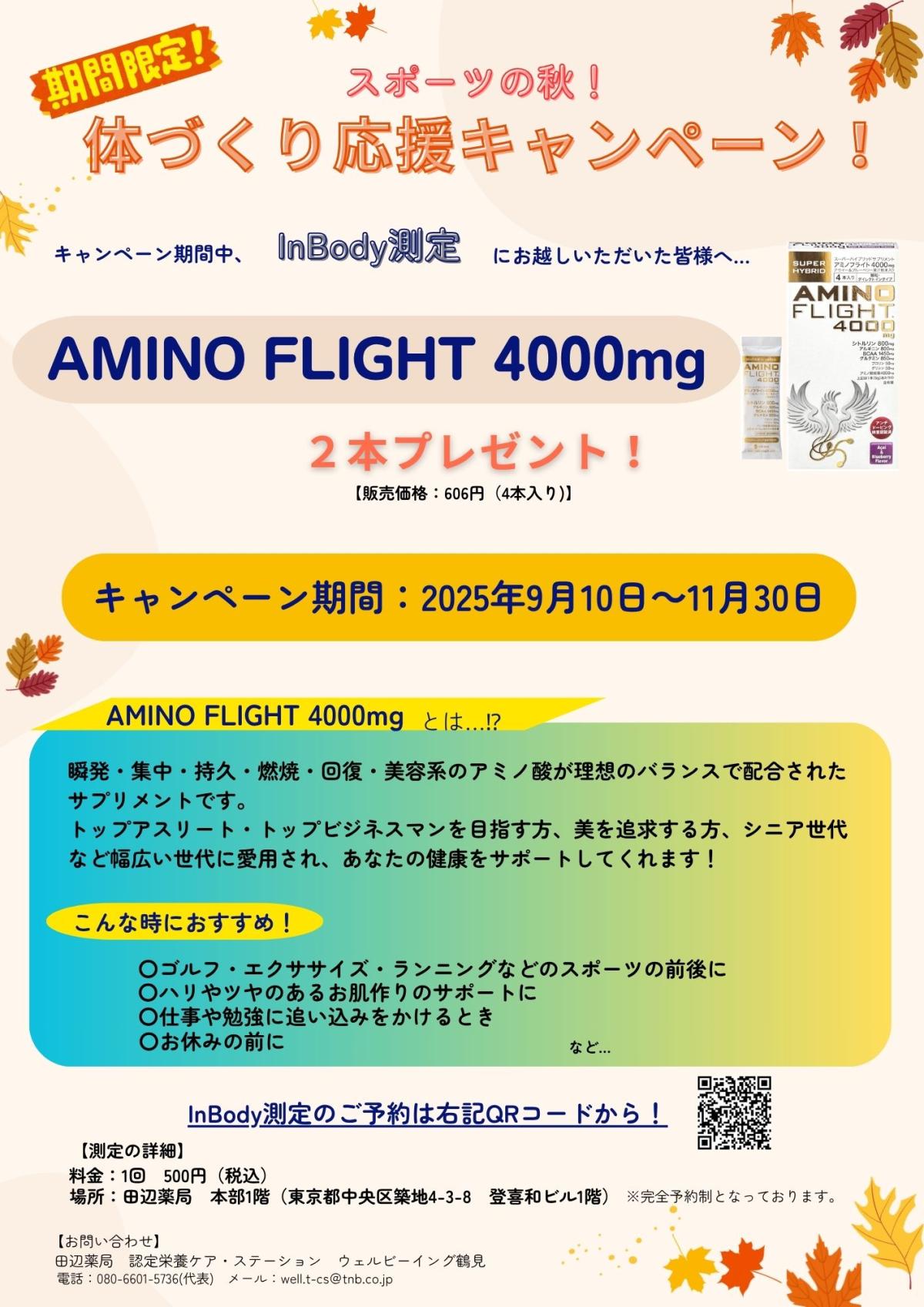 また11月30日までに測定されたには「アミノフライト4000mg」を2本プレゼントしております!